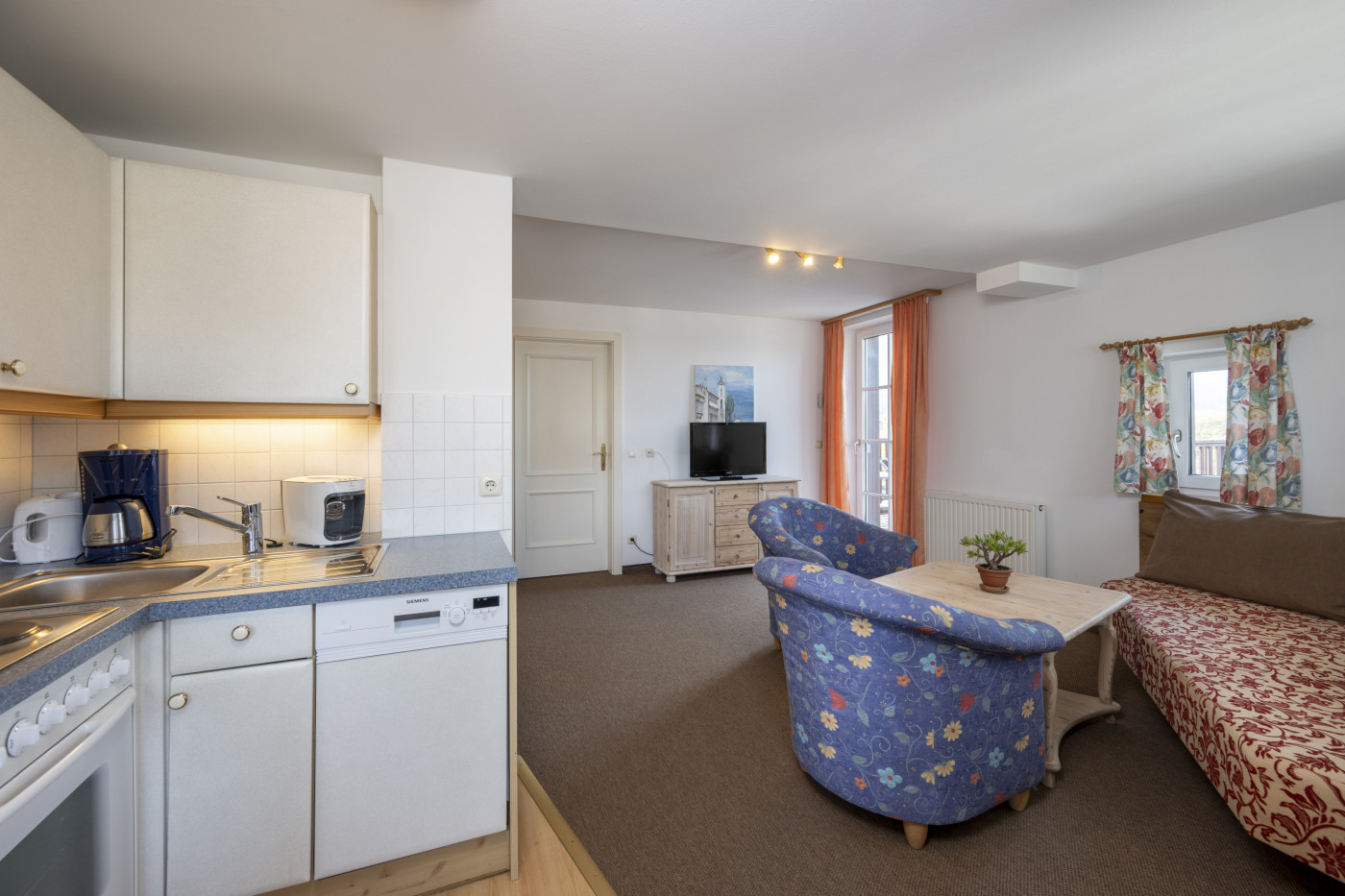 Wohnzimmer, Schlafzimmer, Küche mit Essecke
